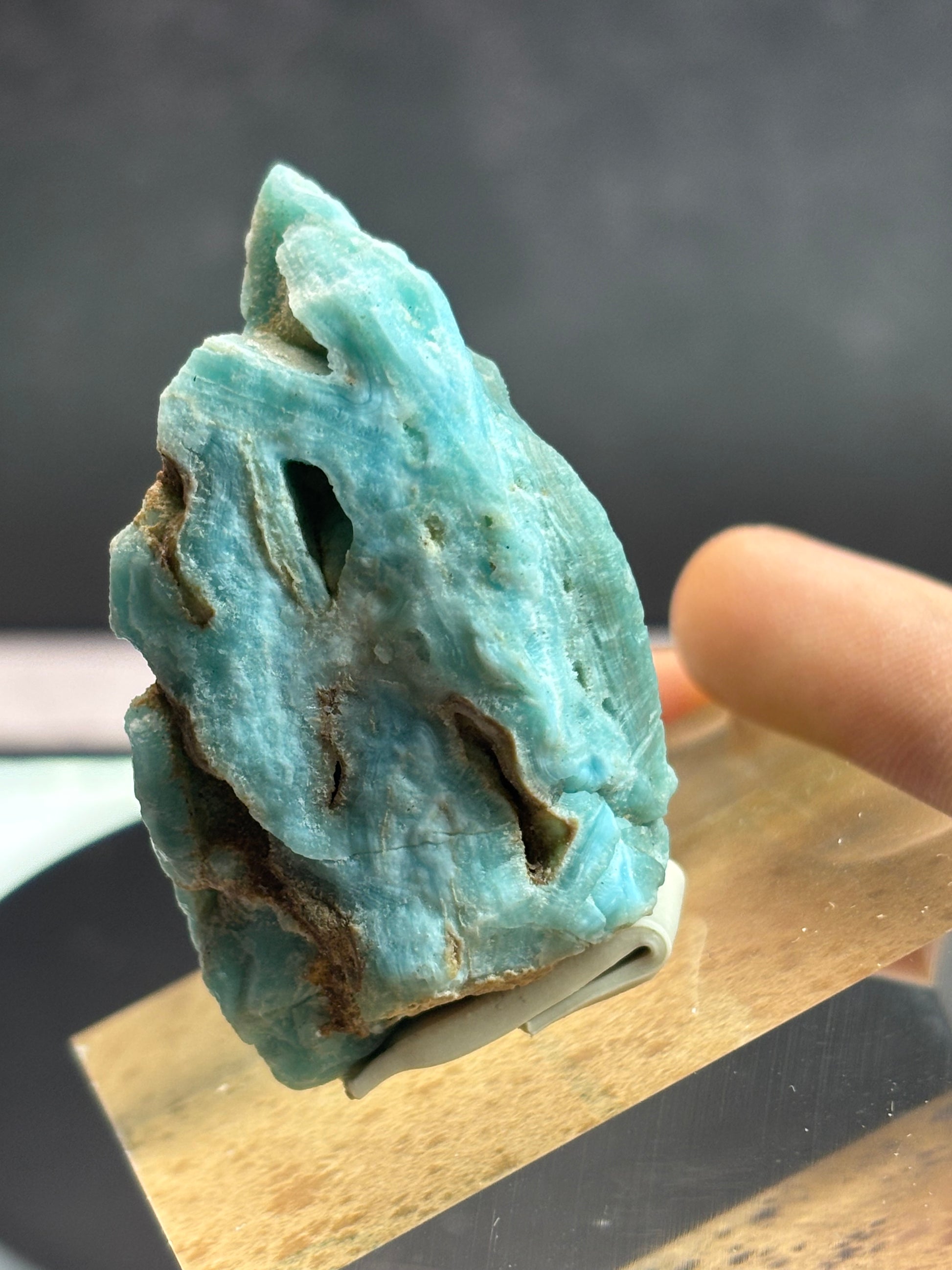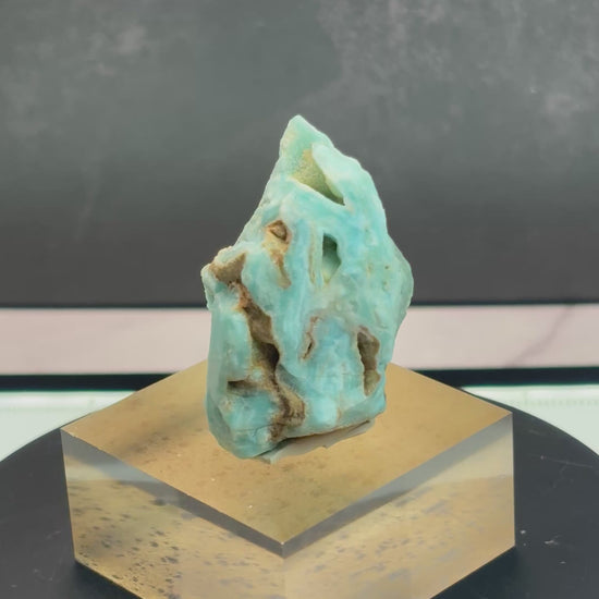 Experience the unique beauty of our Blue Aragonite from Afghanistan. This rare gemstone boasts stunning banding that sets it apart from other aragonite varieties. Bring a touch of Afghanistan into your life with this one-of-a-kind piece.