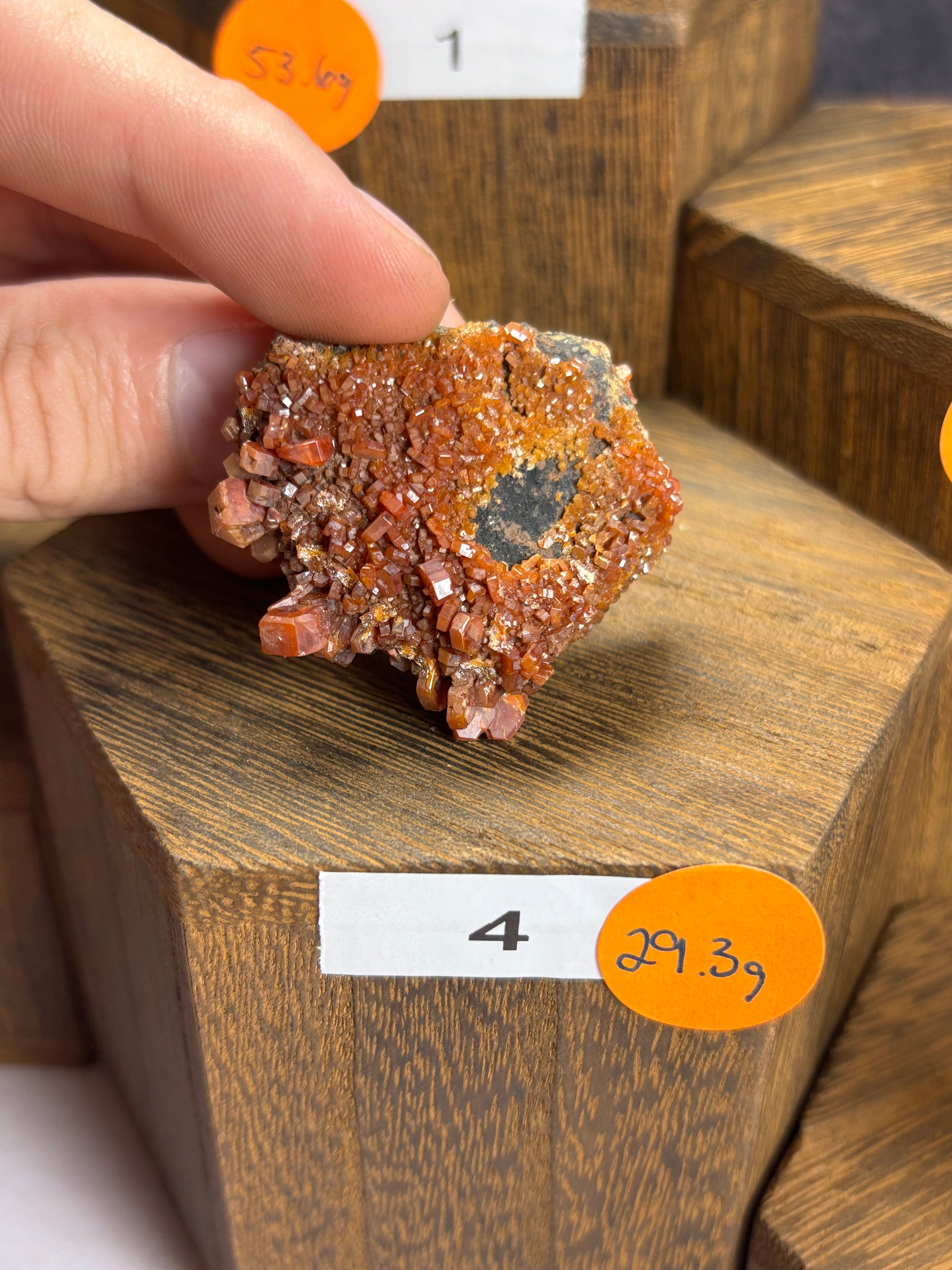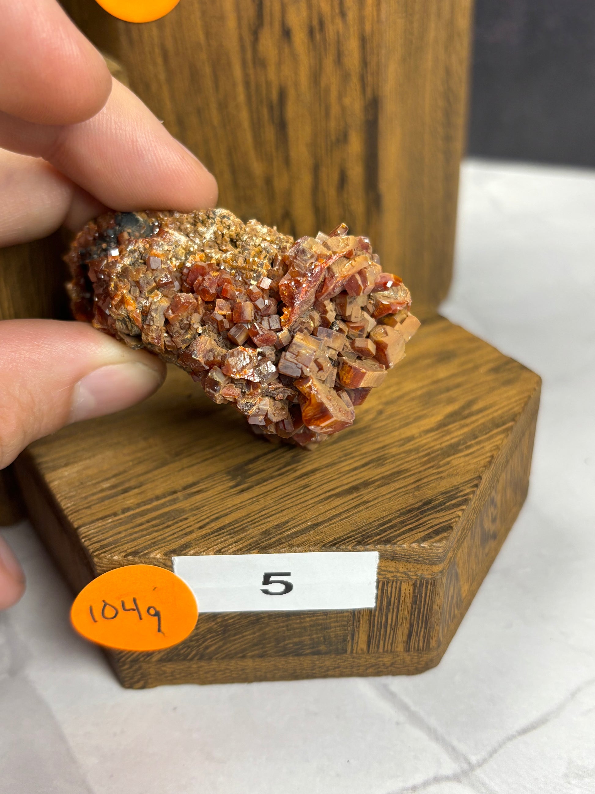 This Vanadinite specimen from Morocco showcases the vivid scarlet-red hexagonal crystals for which the region is world-renowned. Composed of lead chlorovanadate [Pb₅(VO₄)₃Cl], vanadinite crystallizes in the hexagonal system and forms short prismatic crystals with a brilliant luster. With a Mohs hardness of 2.5–3 and unusually high density (~6.8), vanadinite is prized for its dazzling color and rarity, making Moroccan specimens highly sought after by collectors.