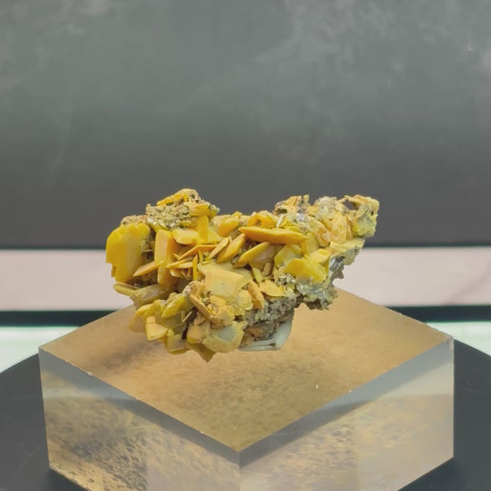 Experience the beauty of nature with our Wulfenite from Morocco. This unique mineral specimen showcases stunning orange and yellow coloration. Perfect for collectors or those looking to add a touch of nature to their home decor. Expertly sourced and ethically produced.