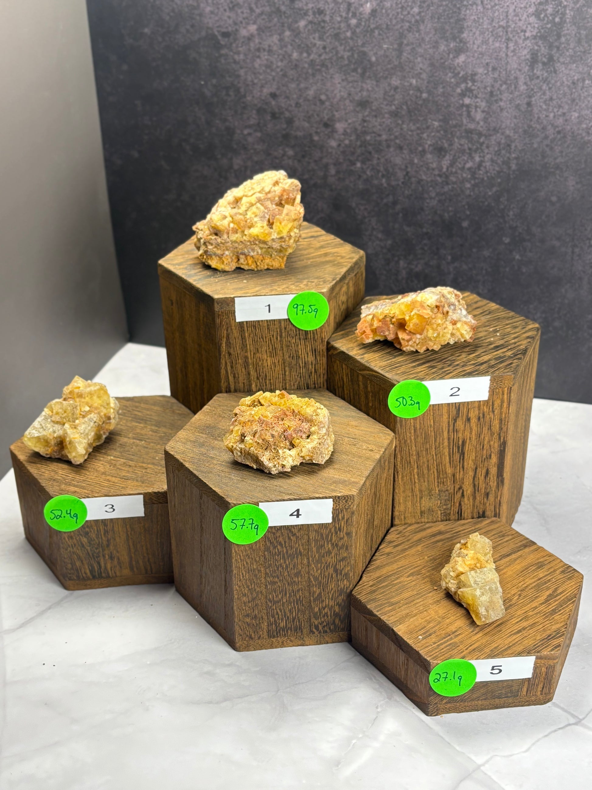 These Yellow Fluorite specimens from Morocco are a striking example of calcium fluoride (CaF₂) crystallized in the cubic system. Its golden hue is caused by trace impurities and natural irradiation, giving it a vibrant warmth uncommon in fluorite. With a Mohs hardness of 4, vitreous luster, and potential for strong fluorescence under UV light, Moroccan fluorite specimens are highly sought after by collectors worldwide.